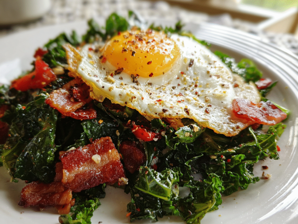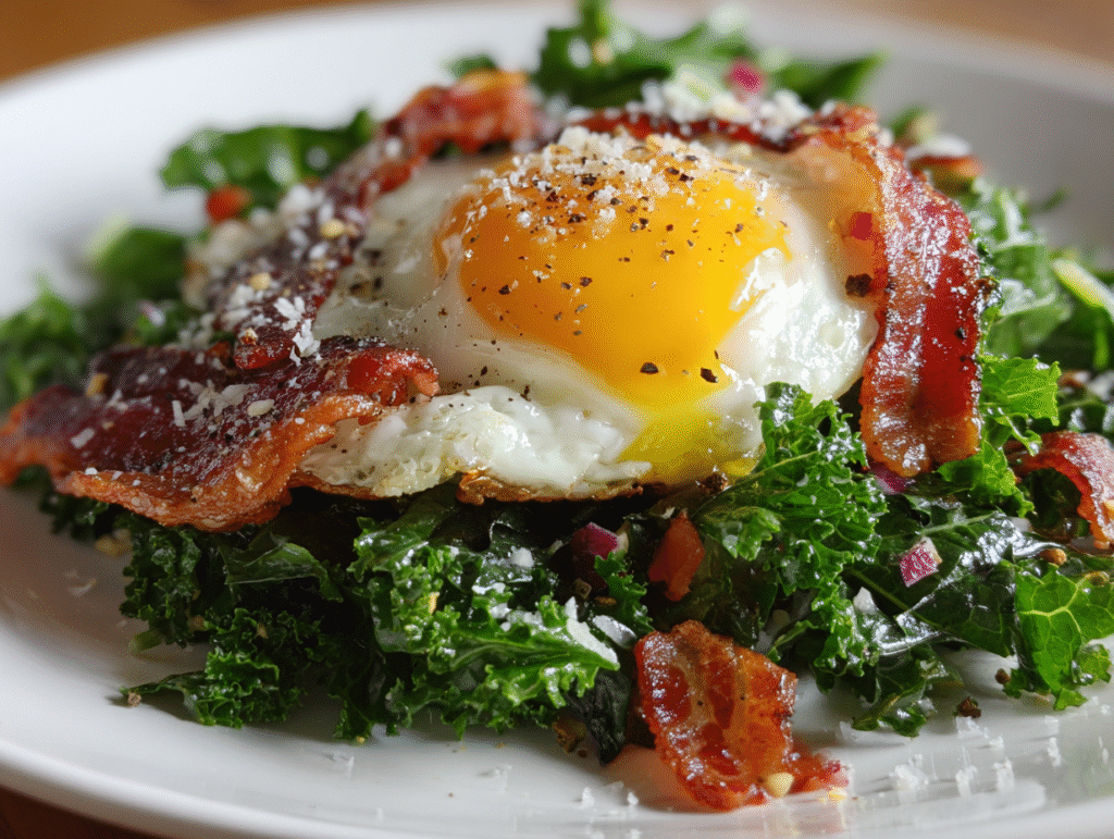• Flavor: A harmonious blend of savory bacon, rich egg, and the slight bitterness of kale.