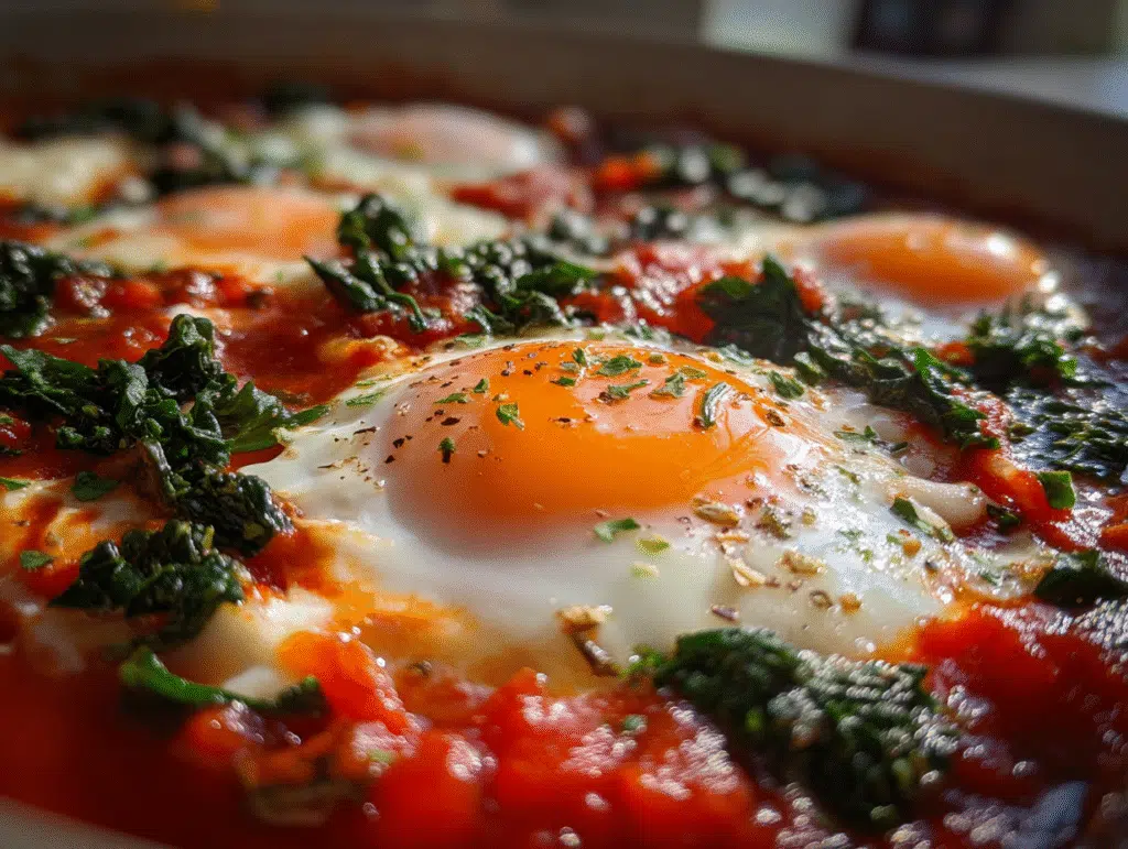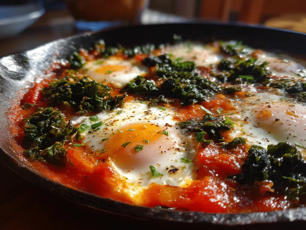 - Versatility: Perfectly suited for any meal, Baked Eggs in Tomato Sauce with Kale can be easily customized to suit your taste or dietary preferences.