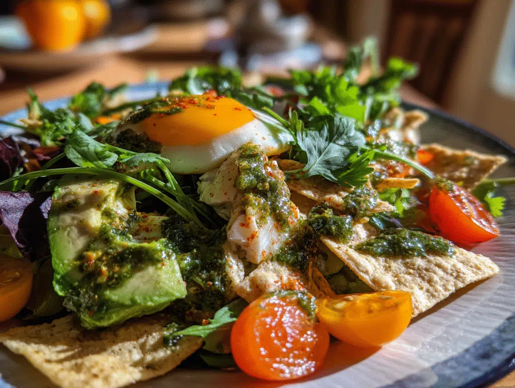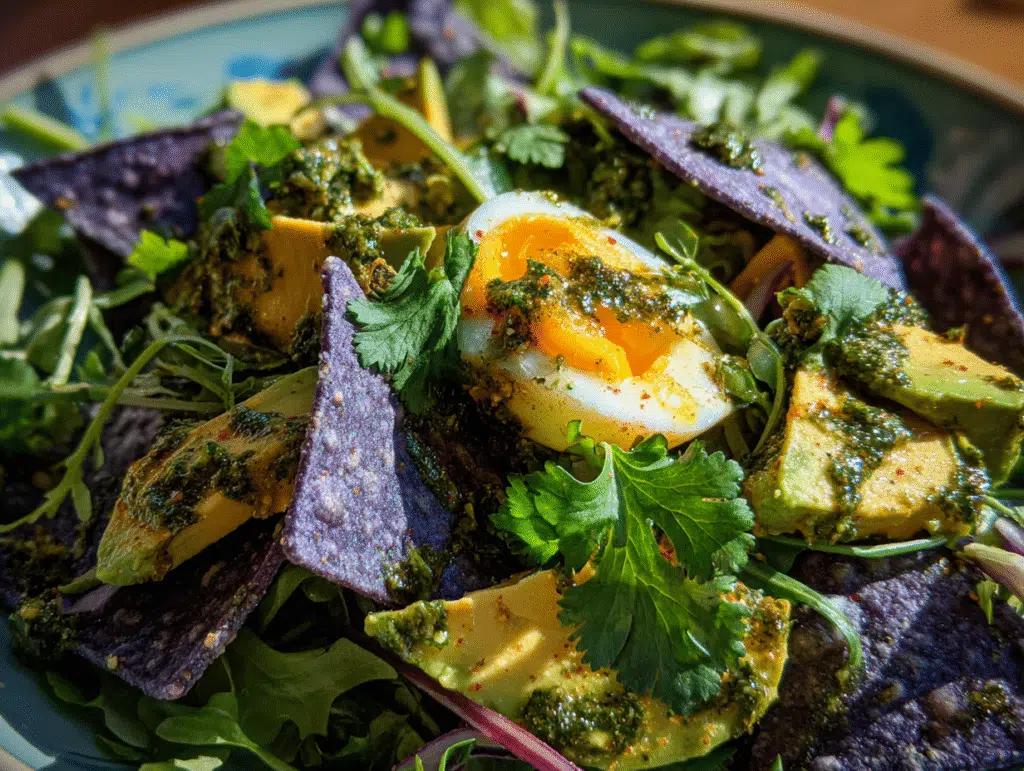 Are you looking for a fresh, revitalizing way to start your morning? Look no further than our Breakfast Salad with Egg & Salsa Verde Vinaigrette. This dish combines bright flavors and nourishing ingredients, all while being incredibly simple to prepare. With the zest of salsa verde, the creaminess of avocado, and the crunch of blue corn tortilla chips, every bite is a delightful party for your palate!