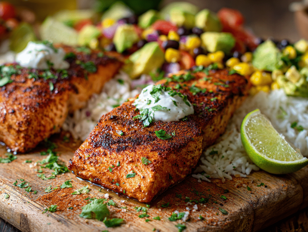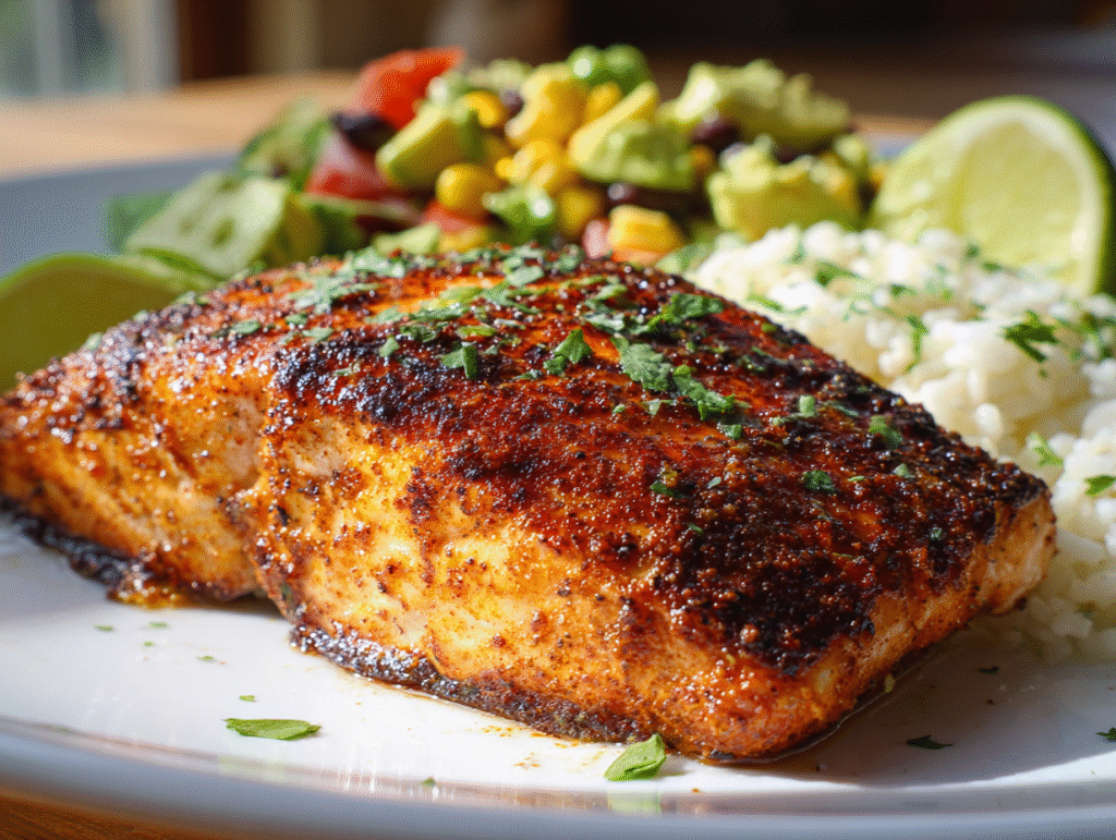 The flaky, perfectly seared salmon gets its signature kick from a homemade Cajun rub made with paprika, garlic powder, cayenne, and herbs. Topped with a smooth, tangy avocado lime sauce, this dish is vibrant, hearty, and deeply satisfying. Plus, it’s quick to prepare — ready in just 30 minutes — making it ideal for anyone who wants a restaurant-quality meal at home.