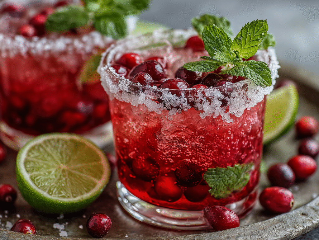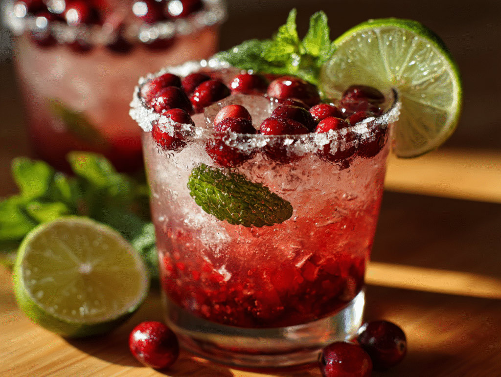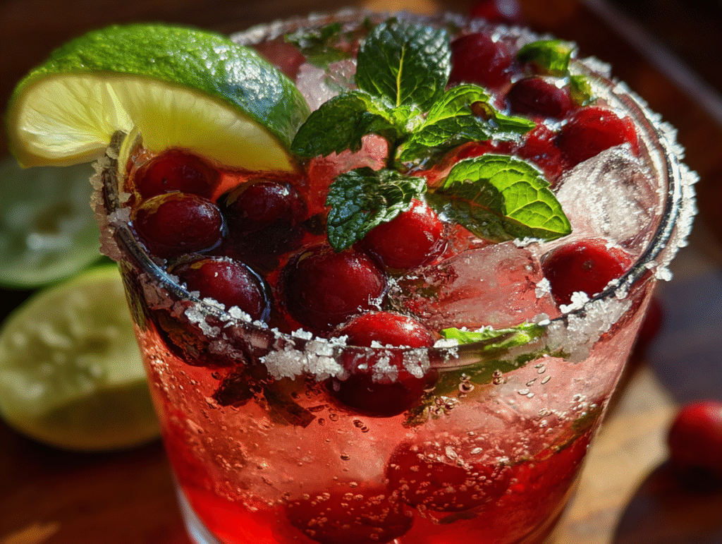 This combination transforms a classic margarita into a seasonal delight that’s both light and festive. With garnishes like fresh cranberries, coarse-salt rims, and fresh mint leaves, the drink becomes a show-stopping cocktail that stands out at any holiday gathering.