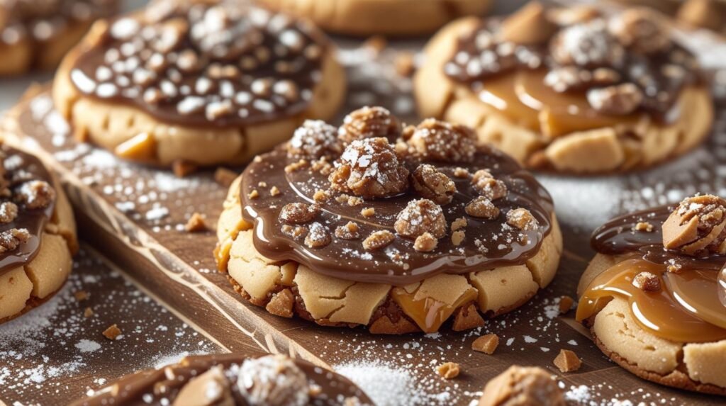 The toffee layer — made from butter and brown sugar — caramelizes beautifully, creating a chewy-sweet base that pairs harmoniously with the smooth chocolate topping. Add-ins like crushed candy canes, sliced almonds, festive sprinkles, or a sprinkle of flaky sea salt can elevate the cookies even further, adding a personal and festive touch.