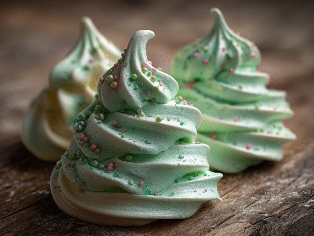 Their simplicity is part of their charm: all you need are 3 large egg whites, ¾ cup granulated sugar, 1 teaspoon vanilla extract, and a touch of green gel food coloring to build the base. With a swirl of a piping bag and the sparkle of colorful sprinkles, these meringues transform into adorable edible Christmas trees that captivate guests of all ages. Since meringues are naturally gluten-free and low in calories, they offer a fun and festive way to indulge mindfully during the holiday season.