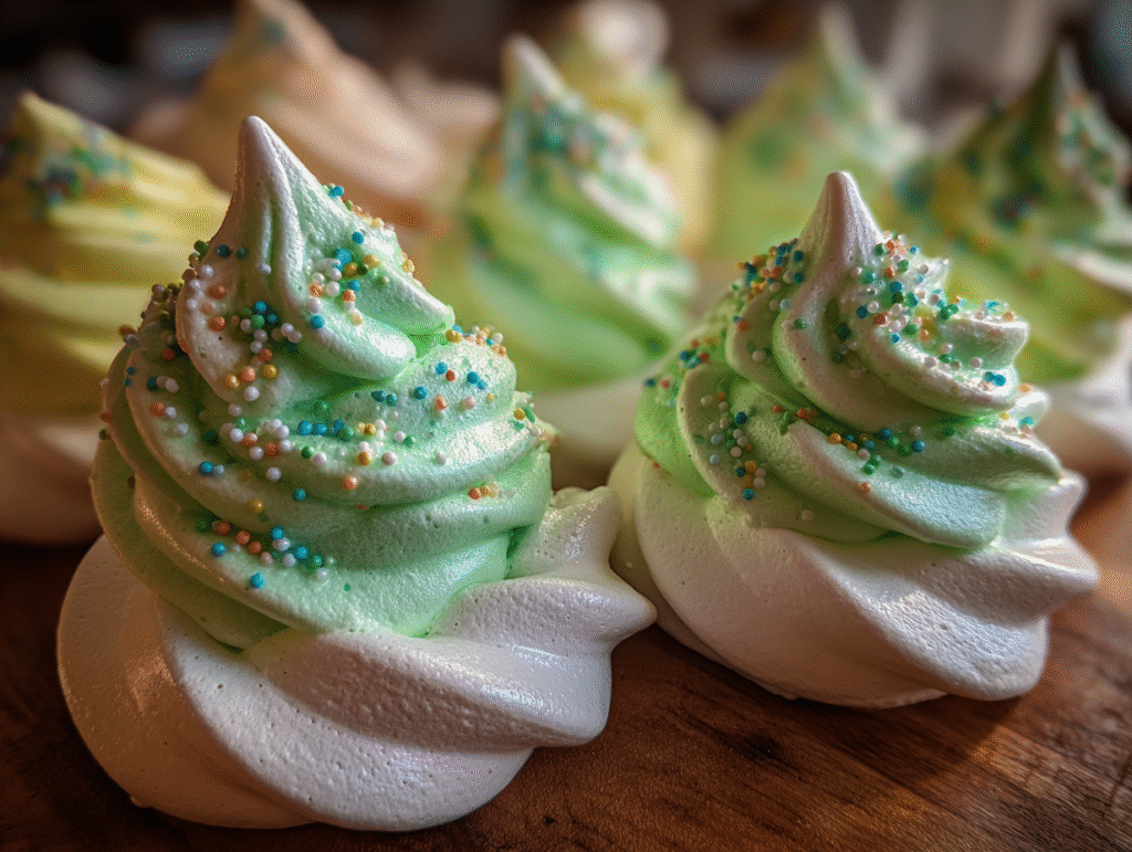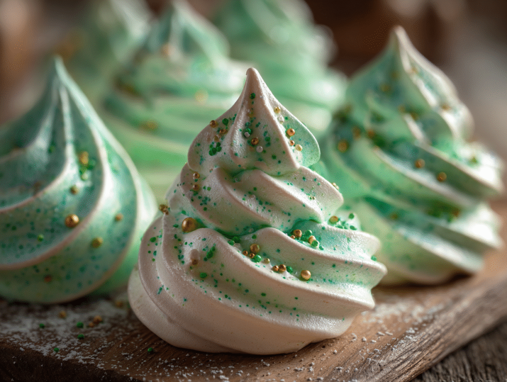 Unlike many holiday desserts,Christmas Tree Meringues Recipe are light, guilt-free, and incredibly easy to store. They don’t require special equipment beyond a mixer and piping bag, making them a great choice for novice bakers and seasoned cooks alike. You can even flavor or color them differently to match holiday themes, dessert boards, or party palettes.