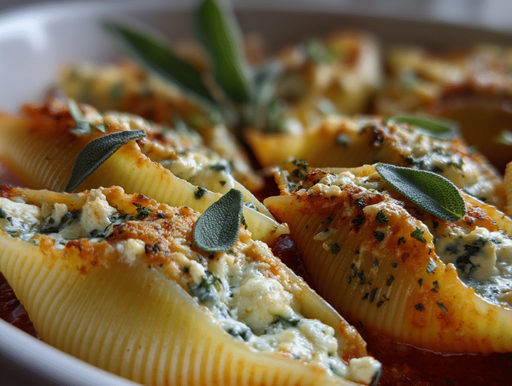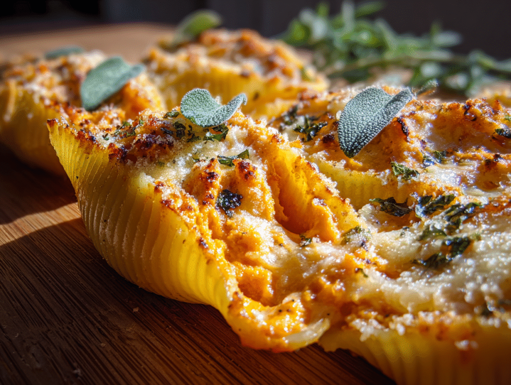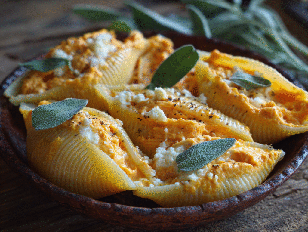 Each shell is generously filled with a luscious mixture of pumpkin and ricotta, accented by garlic, sage, and a touch of nutmeg — the ultimate autumn flavor combination. Whether you’re planning a relaxed family dinner or an elegant holiday meal, these stuffed shells will bring a taste of fall warmth straight to your table.