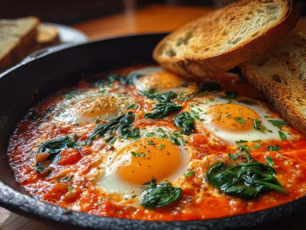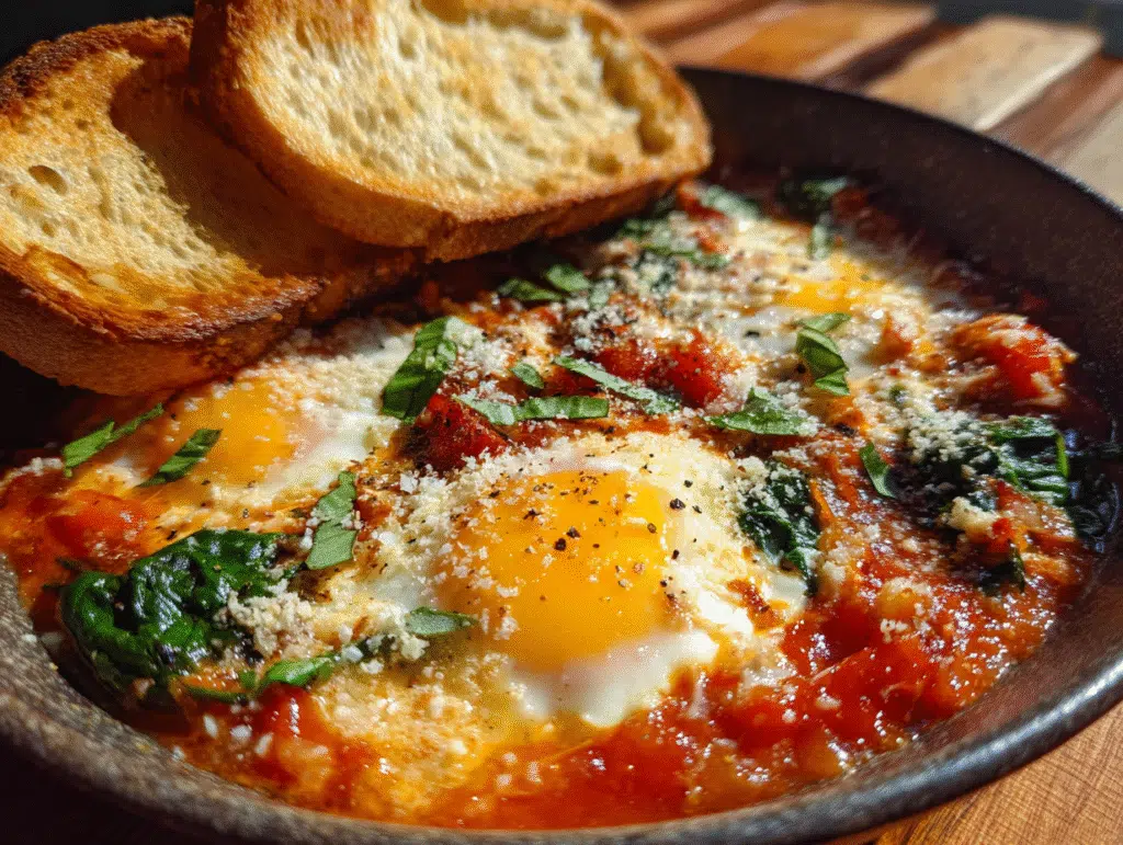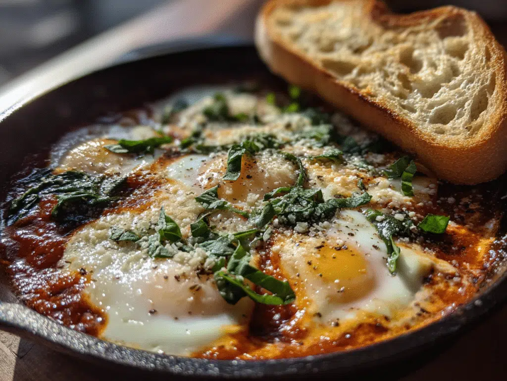 7. Serve the eggs immediately with toasted Italian whole-wheat bread on the side, perfect for dipping into the rich sauce.