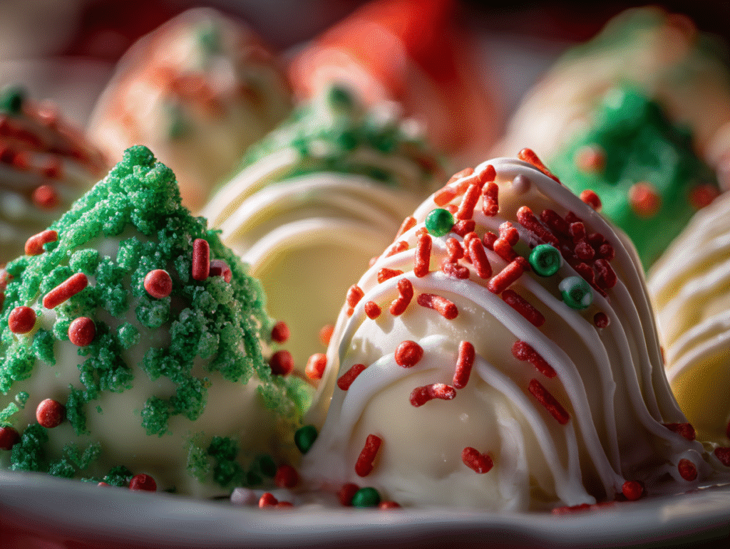 Each bite delivers creamy sweetness with a soft cake center and a satisfying chocolate shell—pure holiday comfort in truffle form.