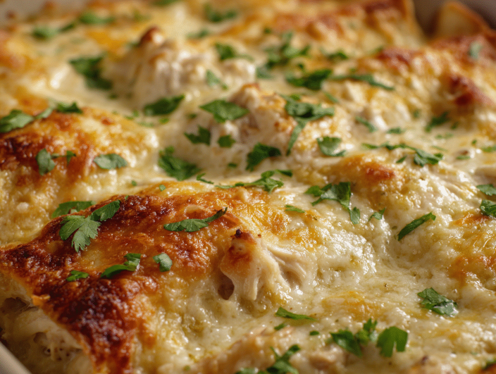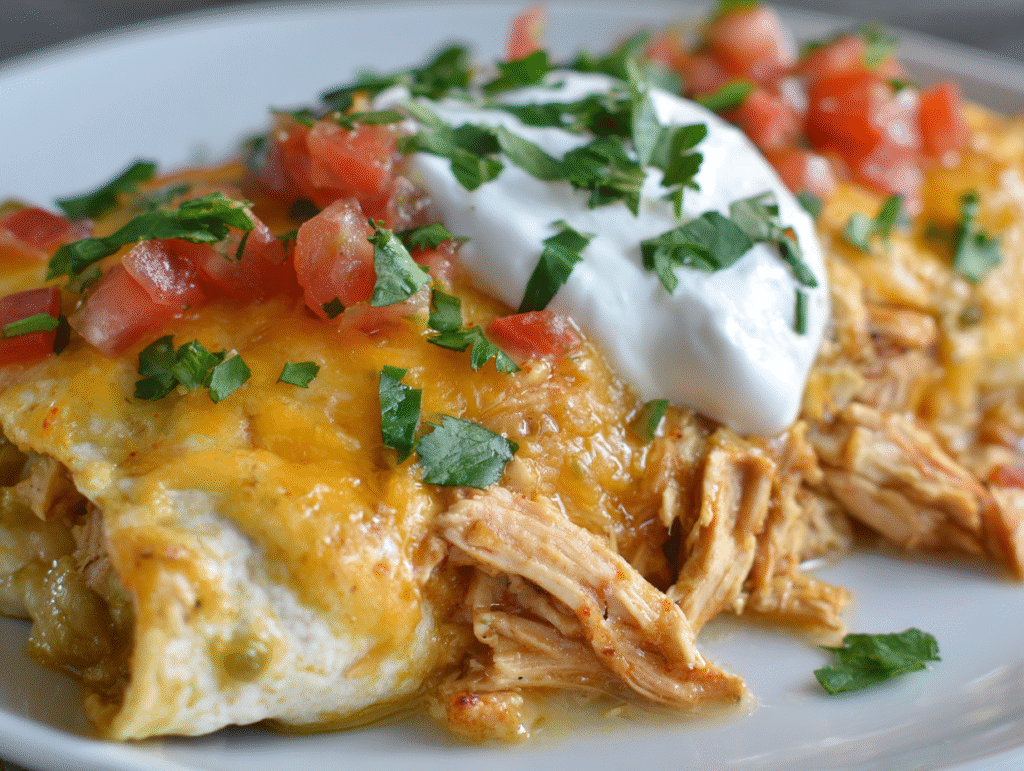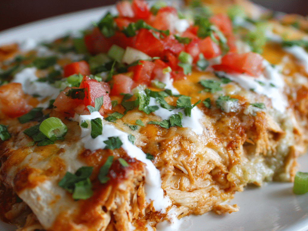 Each serving of Low-Calorie Healthy Chicken Enchiladas offers a balanced nutritional profile — high in protein, moderate in carbs, and low in saturated fat. Using lean chicken breast ensures plenty of protein for muscle health, while Greek yogurt contributes calcium and probiotics for gut health. Whole wheat tortillas add fiber to promote digestion and long-lasting energy.