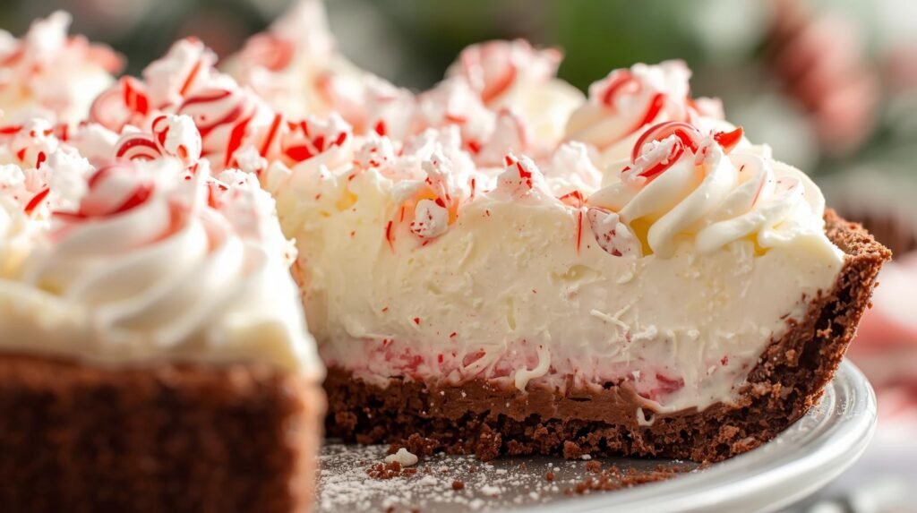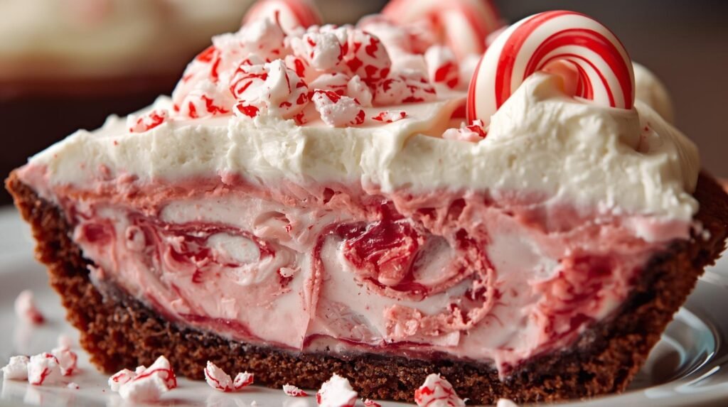 The Oreo or chocolate cookie crust delivers a deep cocoa crunch that contrasts beautifully with the soft filling. Cream cheese forms the base of the filling, offering richness and structure, while whipped topping keeps the pie light and airy. Peppermint extract adds that unmistakable holiday flavor, and crushed peppermint candies bring both visual appeal and texture.