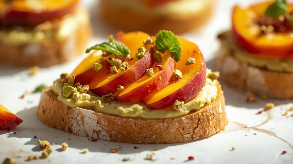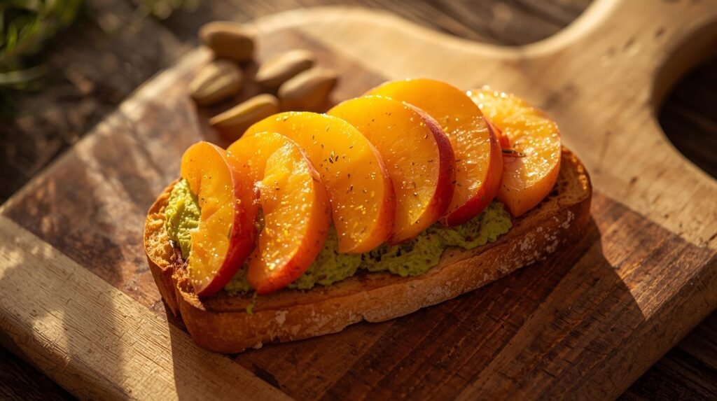 This Pistachio & Peach Toast is not only delicious—it’s a wholesome, energizing choice for any time of day. Peaches are rich in vitamins A and C, known for their role in supporting immune health and glowing skin. Their high water content also helps with hydration, especially in hot weather.