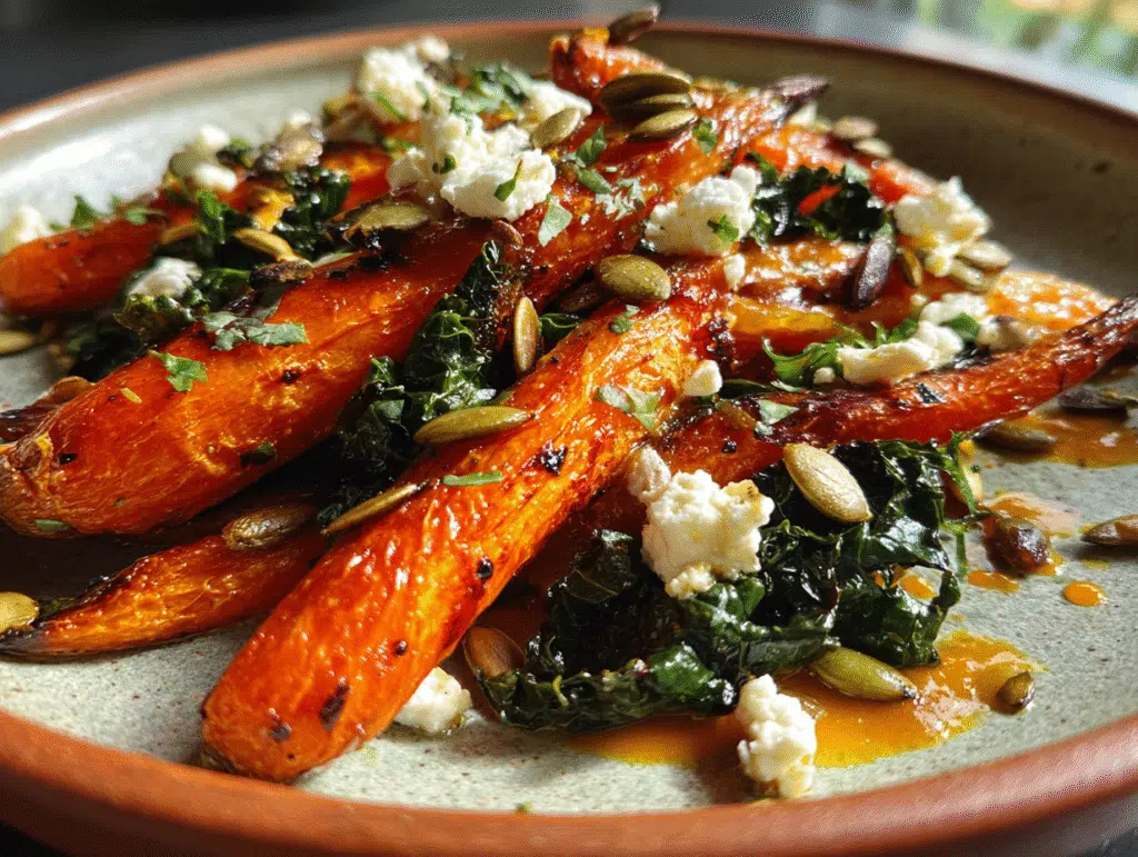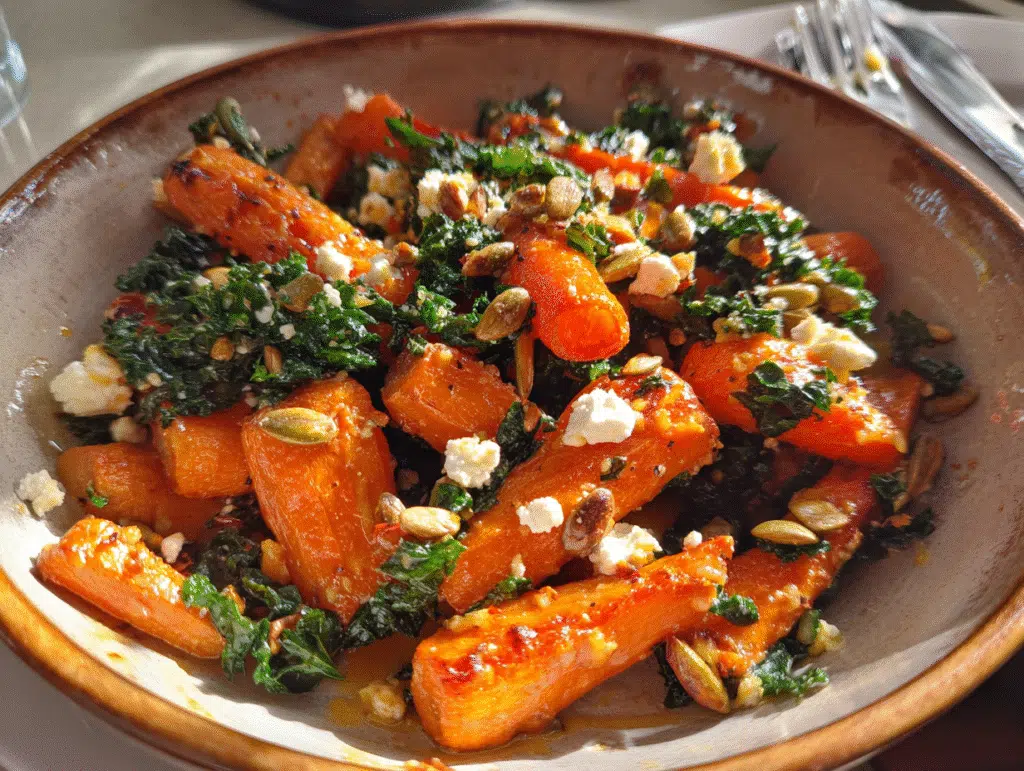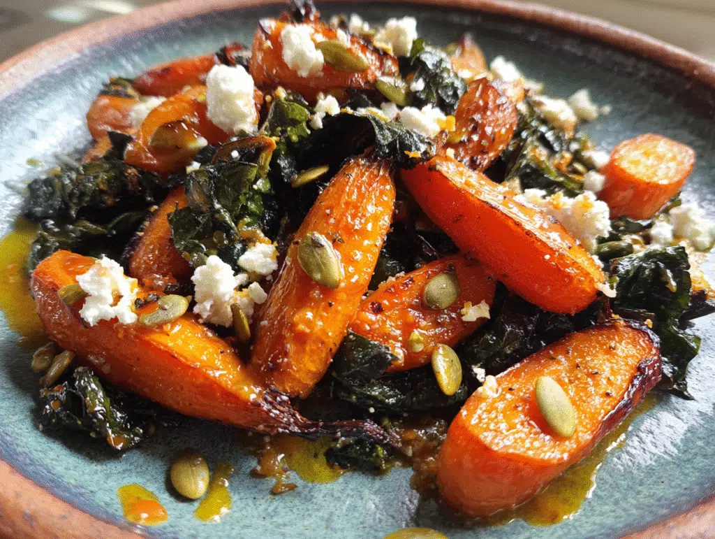 This Roasted Carrot Salad is not only a treat for your taste buds but also a nutritional powerhouse. Carrots are rich in beta-carotene, vitamin K, and fiber, providing excellent health benefits. The kale adds a wealth of vitamins A, C, and K, with a hefty dose of antioxidants. Feta cheese contributes calcium and beneficial probiotics. For more in-depth nutritional insights, check out this nutrition resource.