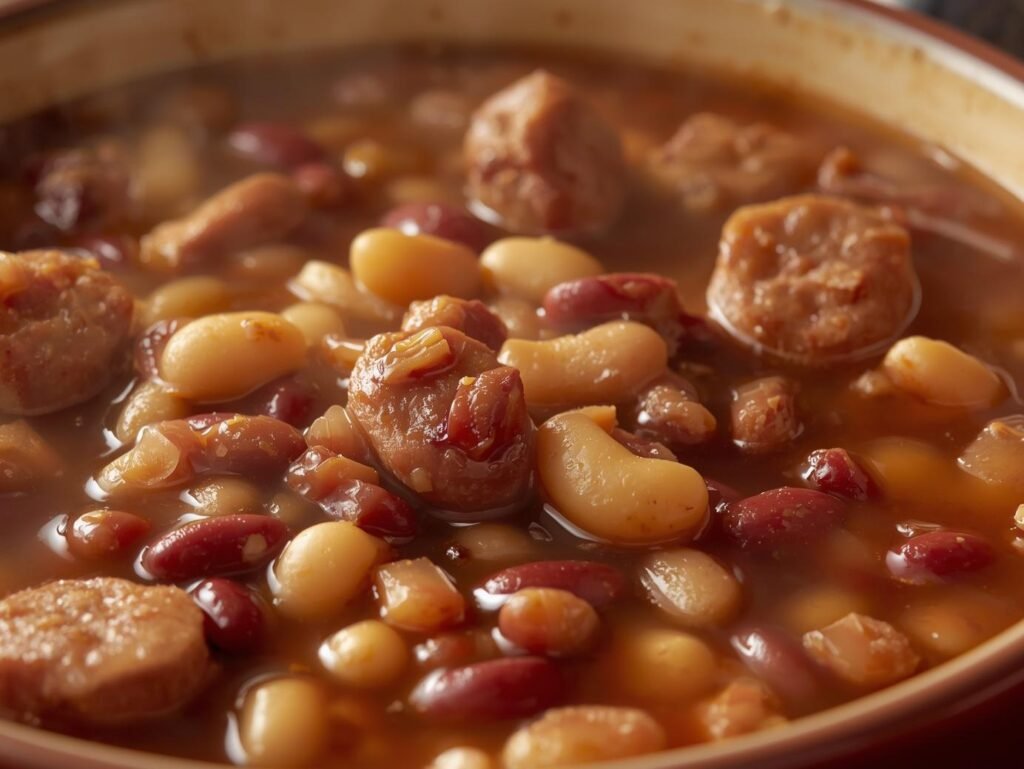 Beans deliver a wide range of nutrients including potassium, iron, magnesium, and a generous dose of fiber supporting heart and digestive health. The sausage offers protein and satisfying richness, while vegetables provide essential antioxidants.
