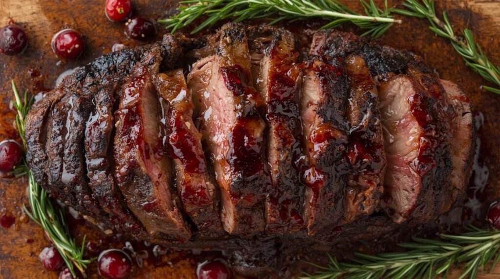 This dish transforms a simple beef chuck roast into a melt-in-your-mouth centerpiece. Slowly braised to perfection in a flavorful bath of beef broth, balsamic vinegar, caramelized onions, and fresh herbs, the roast becomes incredibly tender. Whole cranberries add a bright burst of tartness, perfectly balancing the richness of the beef and giving the glaze a festive, jewel-like finish.