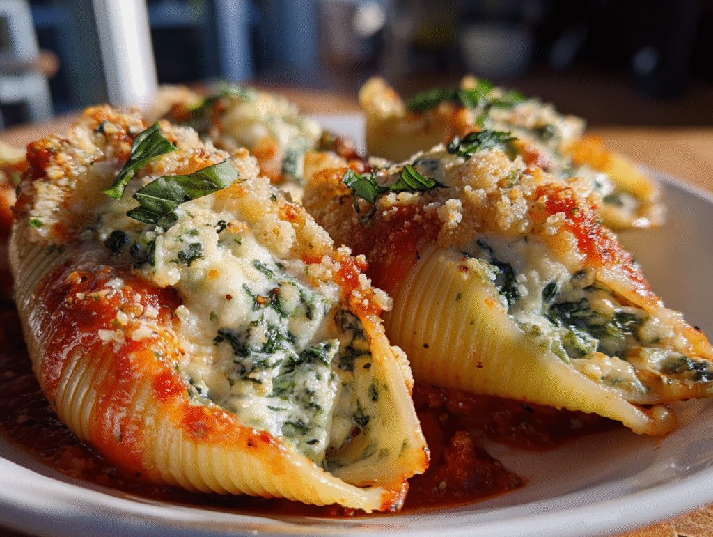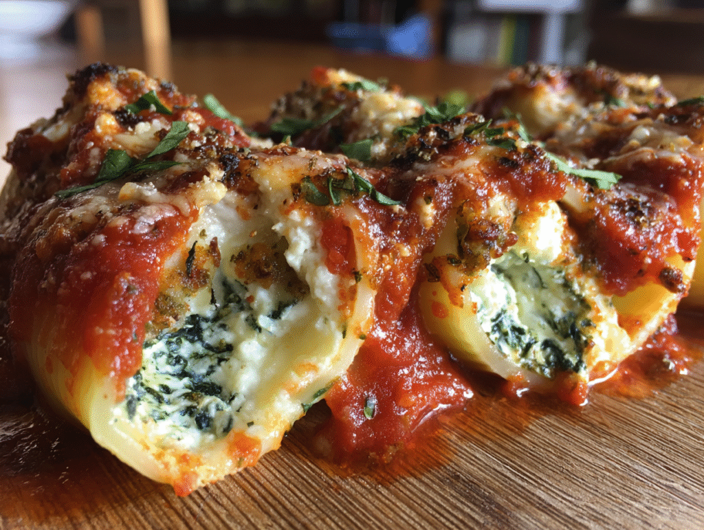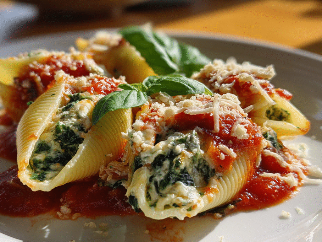 Unlike traditional baked pasta dishes that can feel heavy, this version offers a lighter, balanced approach. Each shell is stuffed with a luxurious mixture of ricotta, mozzarella, and sautéed spinach—infused with hints of garlic, basil, and Italian seasoning. Once smothered in a rich marinara sauce and baked to golden perfection, the result is a melt-in-your-mouth meal that’s both indulgent and nourishing.